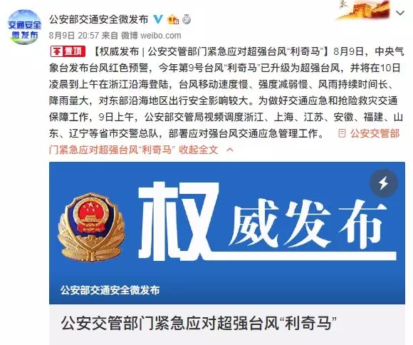 8月10日1时45分前后,今年第9号台风“利奇马”(超强台风级)的中心在浙江省温岭市沿海登陆,登陆时中心附近最大风力16级(52米/秒),中心最低气压930百帕。 超强台风“利奇马”被称为“风王”..