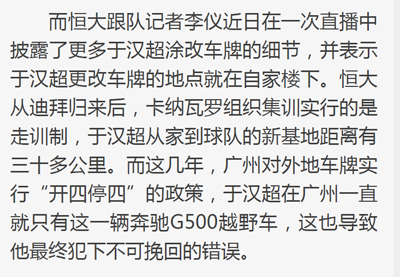 近日,一段广州恒大球员于汉超当街涂改车牌的视频在微博疯传,他竟然当街将车牌中的“E”改成“F”,引发了媒体和球迷的关注。