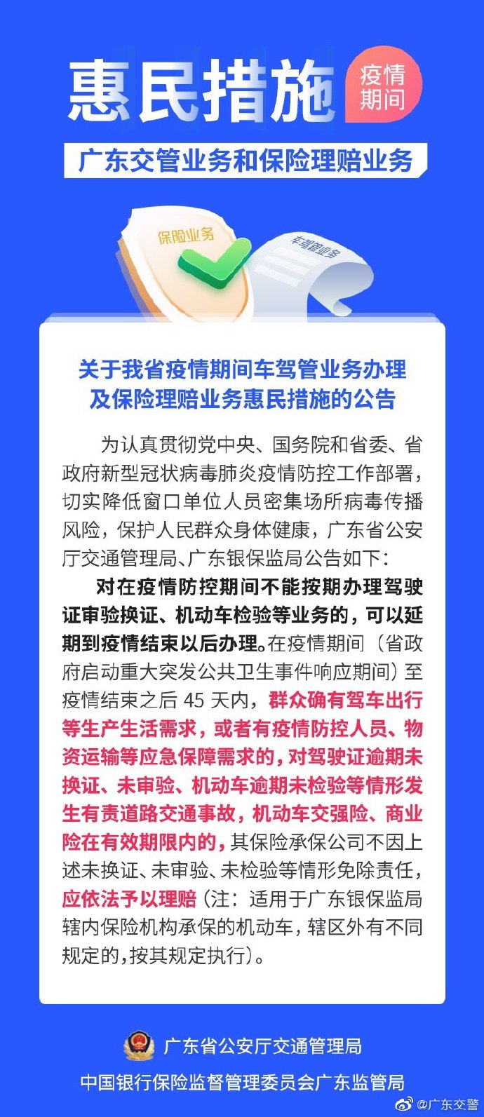近日广东交管局和银保监局联合发布公告,明确疫情期间车险理赔范畴。还未年检的车主们出行更安心了!