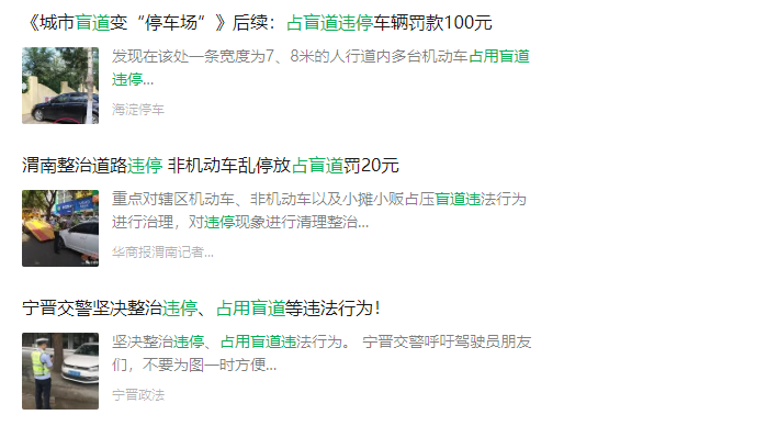 目前,虽然其他地方还没专门为“占用盲道”违法行为立法,但全国各地对于这类违停行为早有处罚。