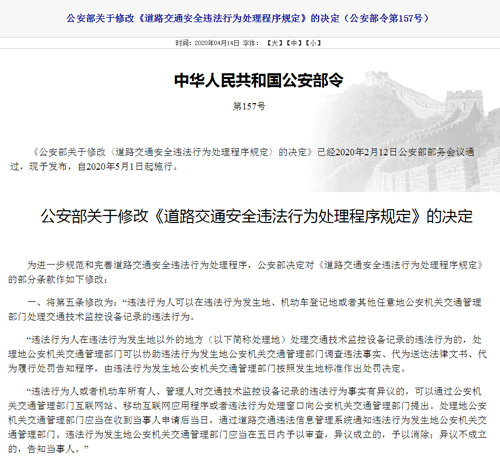 近日,财政部、公安部、中国人民银行联合下发《关于实施跨省异地缴纳非现场交通违法罚款工作的通知》,自今年5月1日起,非现场交通违法罚款,可在全国范围内跨省异地缴纳。