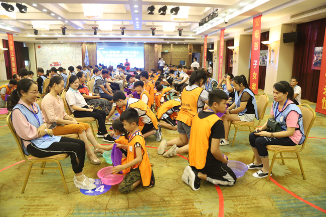 在活动现场进行了呼拉圈、“画图找朋友”、风中劲草、感恩的心、领袖风采二人对话等丰富多彩的游戏,大家热情高涨,积极参与。通过游戏环节增强大家的沟通交流,消除陌生感,让老师和学生、父母和孩子之间有了更深入的了解。在感恩的心环节,志愿者团队给大家带来了精彩的表演,孩子们也给父母和亲人“端水洗脚”,感谢他们对自己的付出和辛劳,活动现场不少家长更是感动落泪。