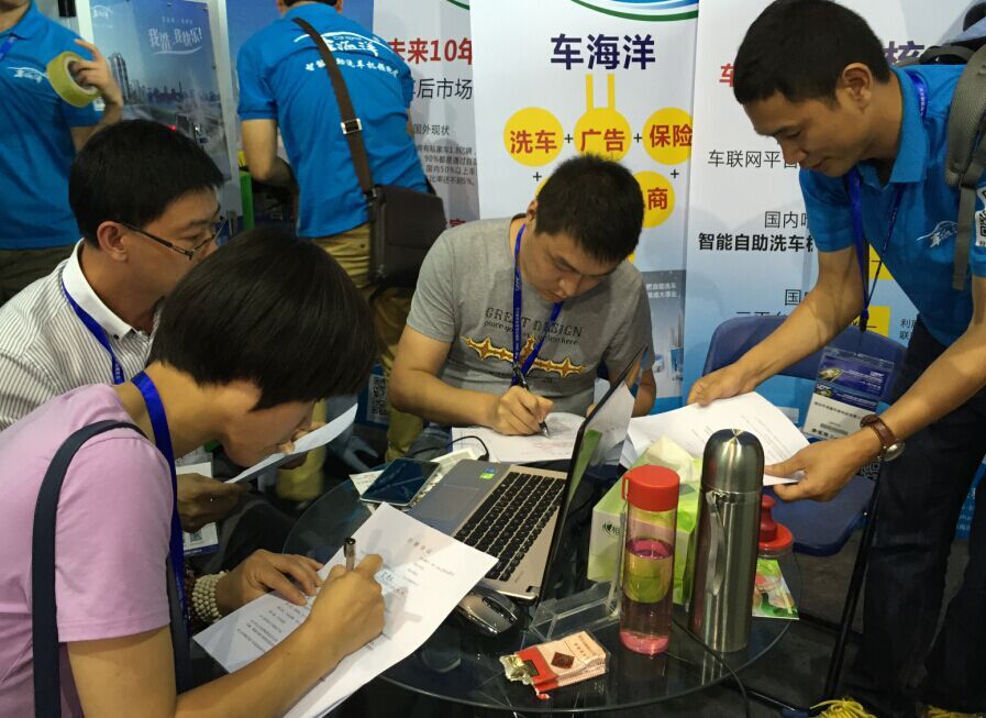 日前,在郑州举行的2015年第十二届中国(郑州)国际汽车后市场博览会上,广东车海洋环保科技有限公司(原深圳市创蓝环保科技有限公司) 推出的智能自助洗车机系列产品艳惊四座,风光无限。八款风格大气、功能各异的洗车机冲击视线,“互联网+车联网+”、“车联网+大数据+云计算”、“功能+平台+创业”、“云+端”等让业界惊叹的产品、理念和模式,吸引了过往人群驻足咨询,慕名而来的客商现场签约,引起了不小的轰动。
