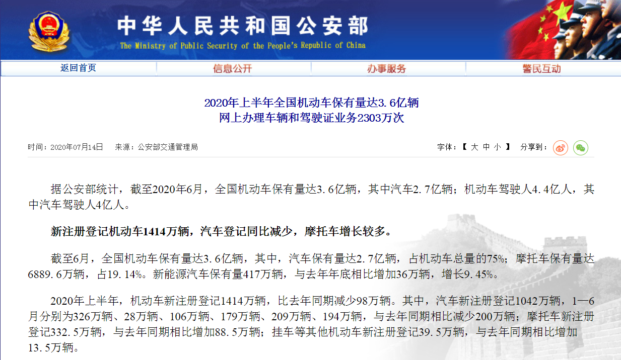 据公安部最新统计,截至2020年6月,全国机动车保有量达3.6亿辆,其中汽车2.7亿辆;机动车驾驶人4.4亿人,其中汽车驾驶人4亿人。