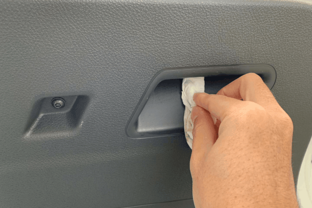 亲友或可疑症状者乘车后,对其接触的物品,包括安全带、门把手、车门内饰板、座椅、仪表台等进行消毒。