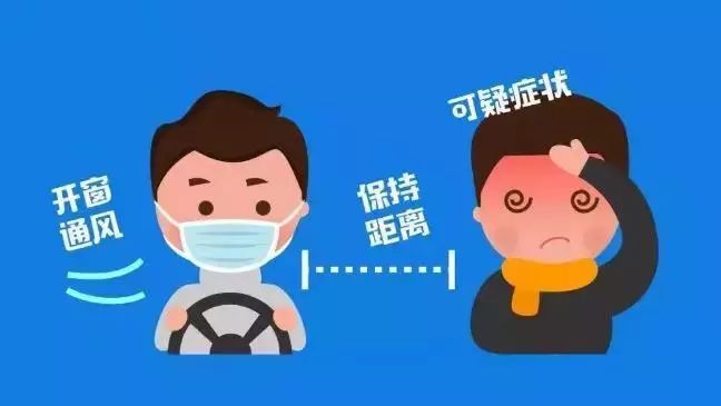 一旦有可疑症状者(可疑症状包括发热、咳嗽、咽痛、胸闷、呼吸困难、乏力、恶心呕吐、腹泻、结膜炎、肌肉酸痛等)搭乘私家车时,全体乘员应佩戴医用外科口罩,有可疑症状者应尽量与同车人员保持距离。车内不要开启空调内循环,适度开窗通风。