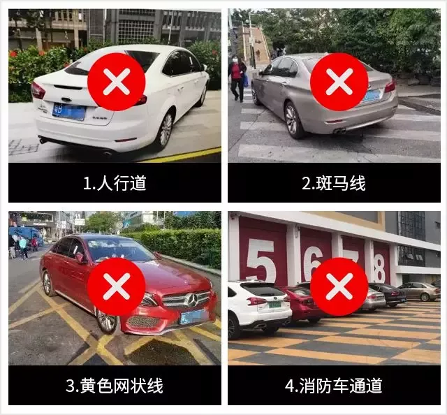 除了前面的违停在绿化带,对在小区、单位出入口,人行道、人行横道、黄方格、公共汽车站点等道路、路段、部位违规停车的行为,深圳全都处1000元罚款。停车场内一车占多位、堵塞出入口、占用消防通道等行为,也通通都罚500元。