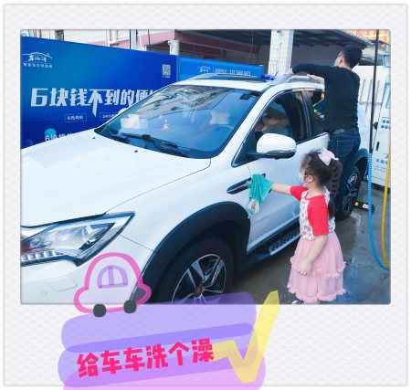 照片故事:最好的爱来自陪伴,跟宝贝女儿给爱车洗澡。