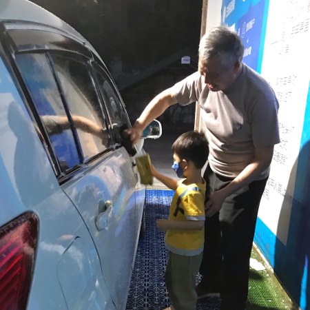 照片故事:难得爷孙三代一齐洗车,同劳动才是真幸福。