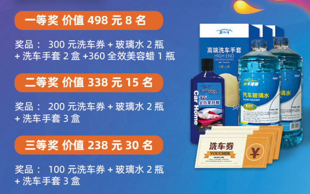 当然,好处不止这些。只要你拍下洗车照片,并报名参加活动,即有机会赢取价值498元的洗车券和养车大礼包,承包你一年的洗车费用和养车用品,天上掉馅饼的大福利,车主们怎可错过?