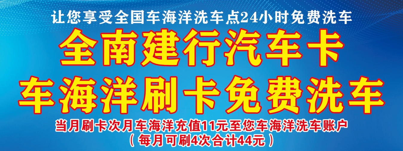 1、全南建行汽车卡,车海洋刷卡免费洗车,长期有效!