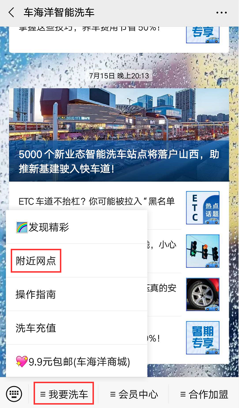 如果在上面的网点中都没有找到离你最近的,欢迎直接在车海洋公众号栏目“我要洗车”-“附近网点”查找在你附近的服务网点喔。