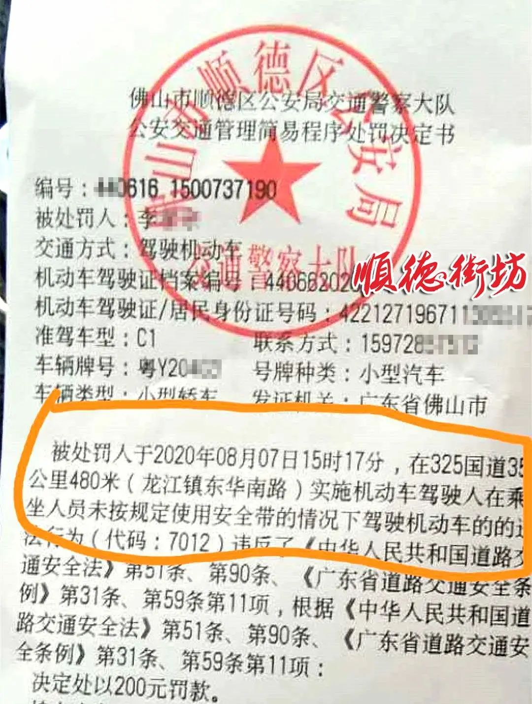听说最近全国多地严查后排不系安全带,顺德一位车主就被罚了200大洋。