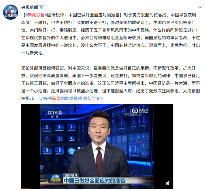 主播康辉铿锵有力地念了一段“国际锐评”