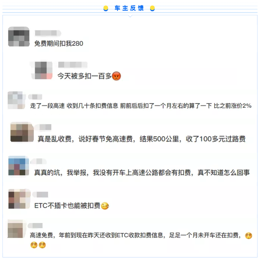 高速免费通行,但是我们却收到不少车主反馈被扣费了。