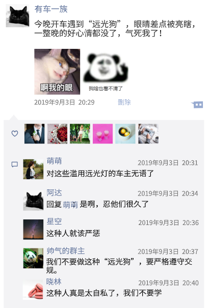 车主C:那些在明晃晃的道路上开远光的人也不知道咋想的,近视还是散光啊?眼睛有毛病戴眼镜吧!